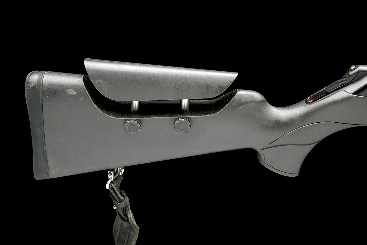 21in. unsighted nitro barrel, threaded for sound moderator, action with integral sight mount bases, detachable magazine with two spare magazine, manual safety / cocking switch, synthetic pistolgrip stock with 14 1/2in. pull (including recoil pad), weight 8lb. 3oz.