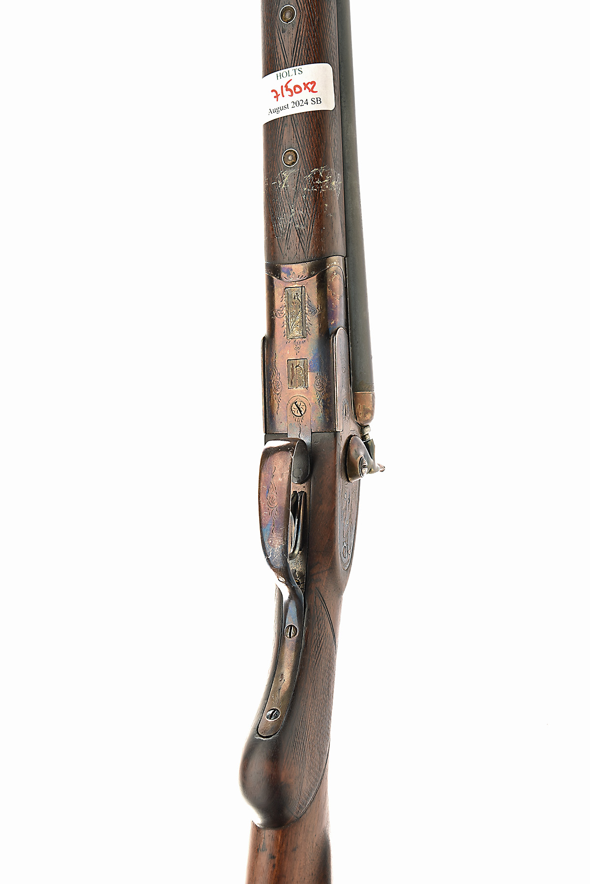 for 1924, 29in. nitro barrels, 2 3/4in. chambers, bored approx. 1/4 and 1/2 choke, treble-grip action with sideclips, border and scroll engraving, 14 1/2in. pistolgrip stock with cheekpiece, pistolgrip cap, sling swivels, including buttplate;