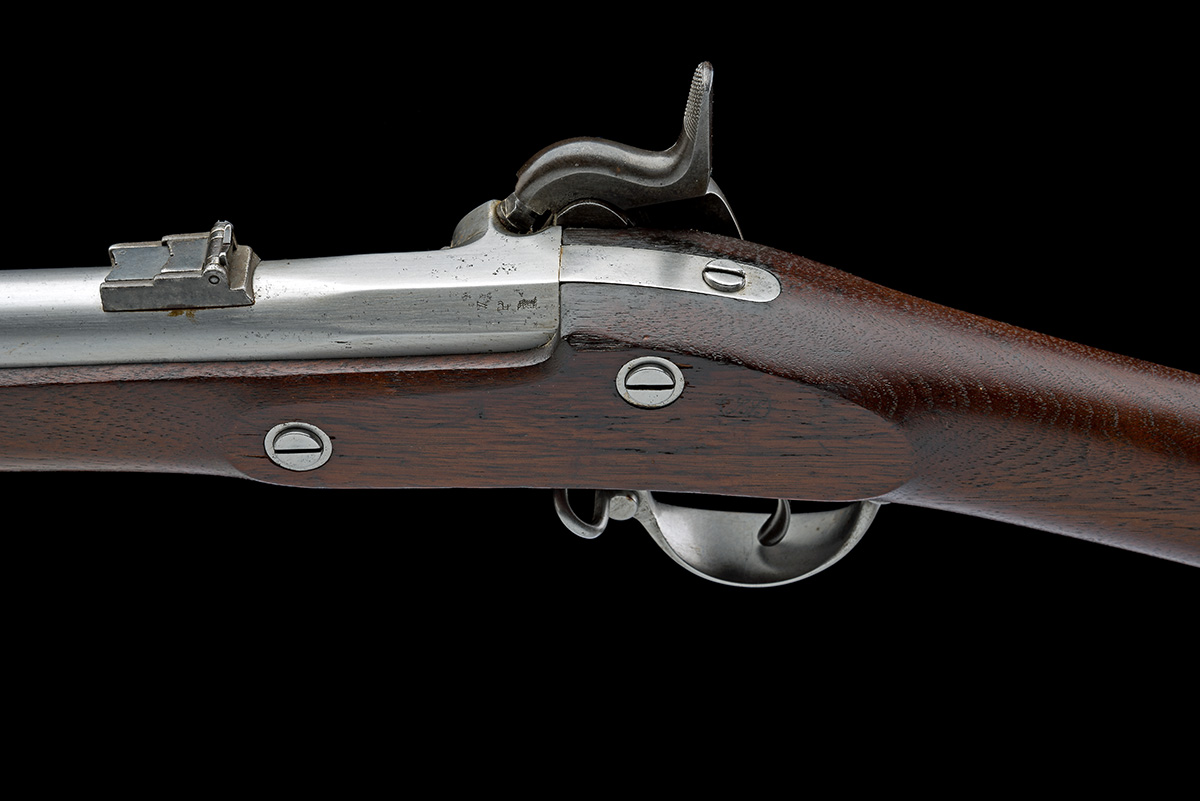 A .58 PERCUSSION MODEL 1855 SINGLE-SHOT RIFLED MUSKET WITH TAPE-PRIMER, SIGNED SPRINGFIELD, no visible serial number,