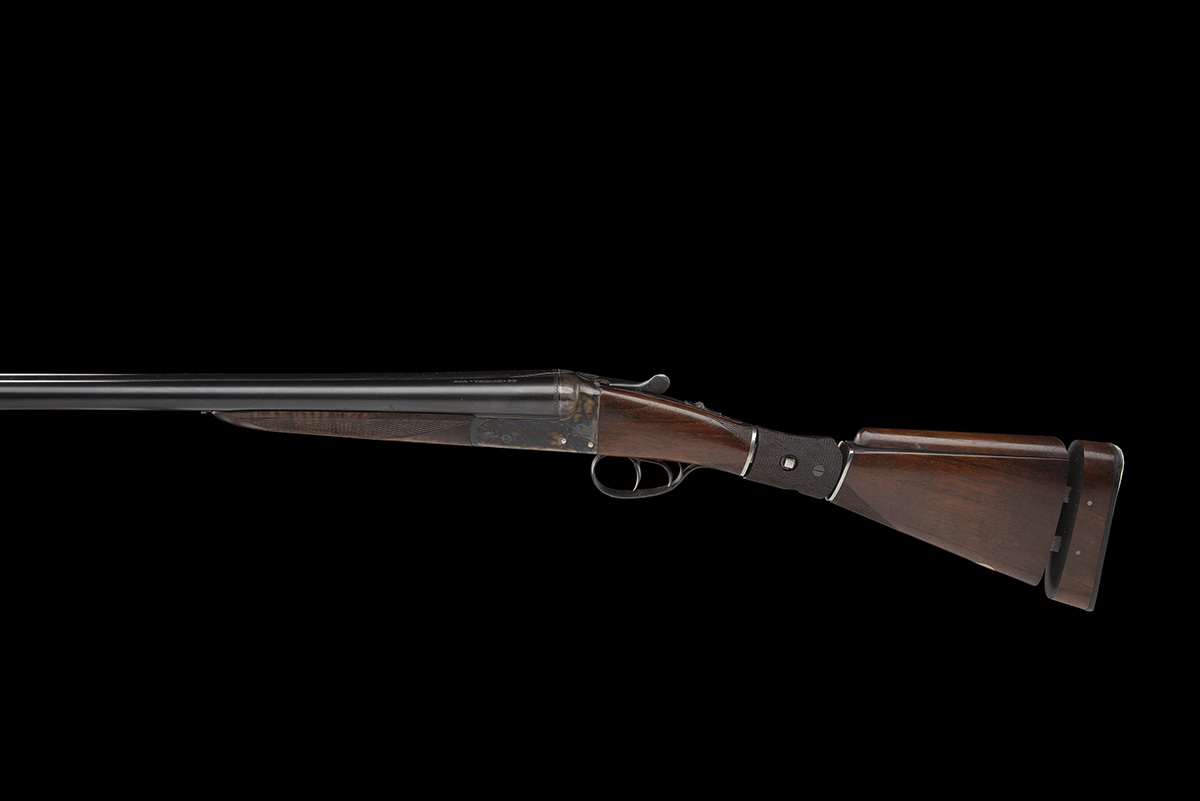 dated 1983, 28in. nitro chopperlump barrels, 2 3/4in. chambers, bored approx. 1/4 and full choke, removable striker discs, automatic safety, action retaining virtually full original colour-hardening and finish, articulated stock with adjustable comb and butt (key missing), weight 7lb. 9oz., in its makers carton