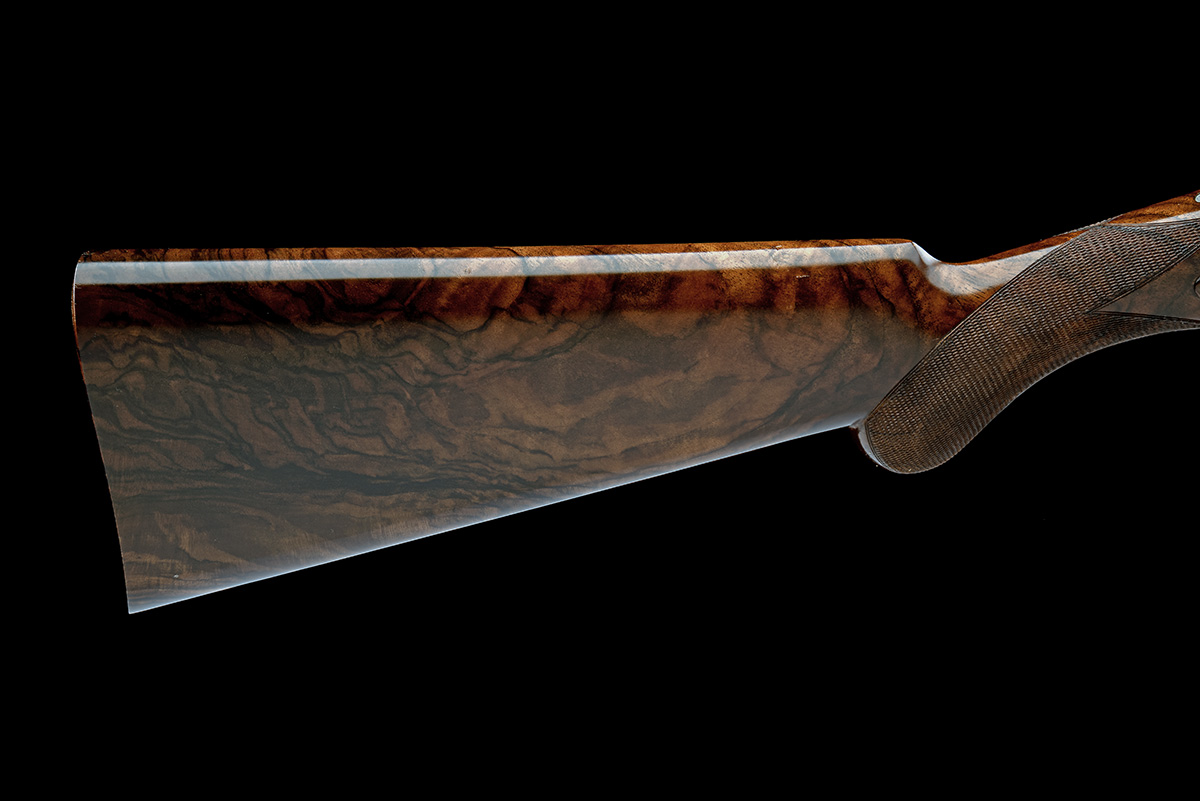 for 1968, 27 1/2in. nitro barrels with solid 6mm matt top-rib, 2 3/4in. chambers, bored approx. 2 3/4in. chambers, bored approx. 1/2 and full choke, hold-open toplever engraved with a partridge head in profile, manual safety with integral barrel selector switch with gold-inlaid 'O', 'U' and 'S' details, colour-hardened trigger, border and acanthus scroll engraving, the decorative sideplates engraved with scenes of pheasant and partridge in flight, triggerplate signed 'Capece', silver finish, 15 1/4in. figured semi-pistolgrip stock, weight 7lb. 4oz.