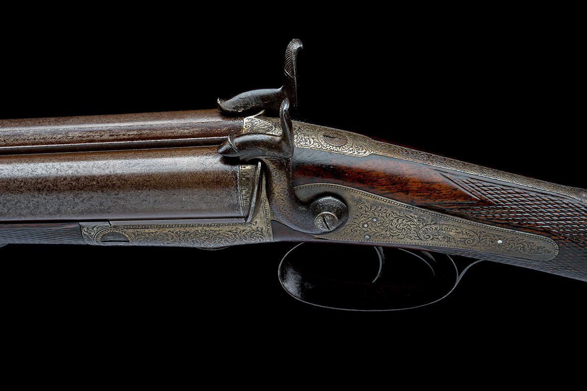 JOSEPH LANG, LONDON A 12-BORE PINFIRE DOUBLE-BARRELLED SPORTING GUN, serial no. 2496,