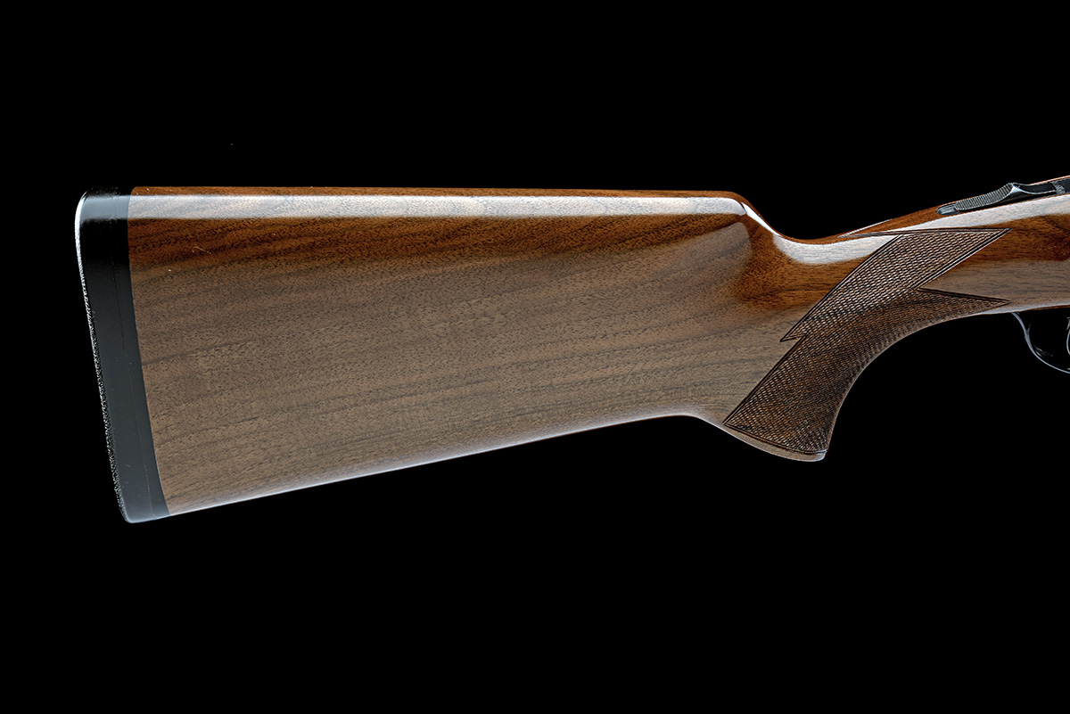 for 1982, 29 3/16in. (74cm) nitro barrels with 11mm ventilated matt top-rib, ventilated mid-rib, 2 3/4in. chambers, bored approx. 3/4 and full choke, manual safety with integral triggerplate release, plain blued finish, 14 3/4in. pistolgrip stock including 3/4in. rubber recoil pad, semi-beavertail fore-end, weight 8lb. 5oz., in its makers universal case