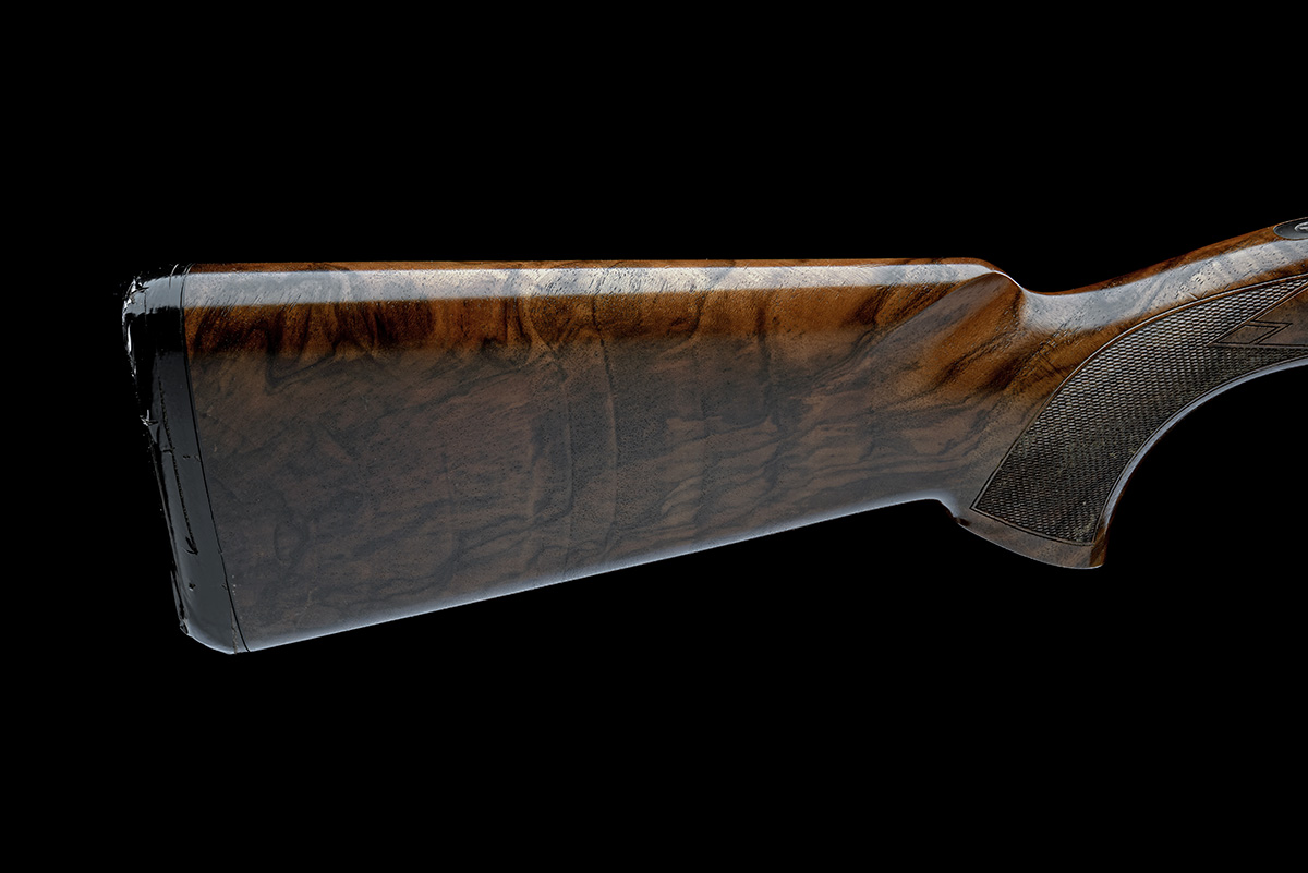 for 2019, 32in. high performance steel proof nitro barrels with 9mm ventilated matt top-rib, 3in. chambers, multichokes (with spares), hold-open toplever, manual safety, triggerplate mounted barrel selector switch, satin gunmetal finish with the model designation in chrome, 14 3/4in. figured pistolgrip stock with palm swell and including 3/4in. taped recoil pad, weight 7lb. 13oz., in its universal case