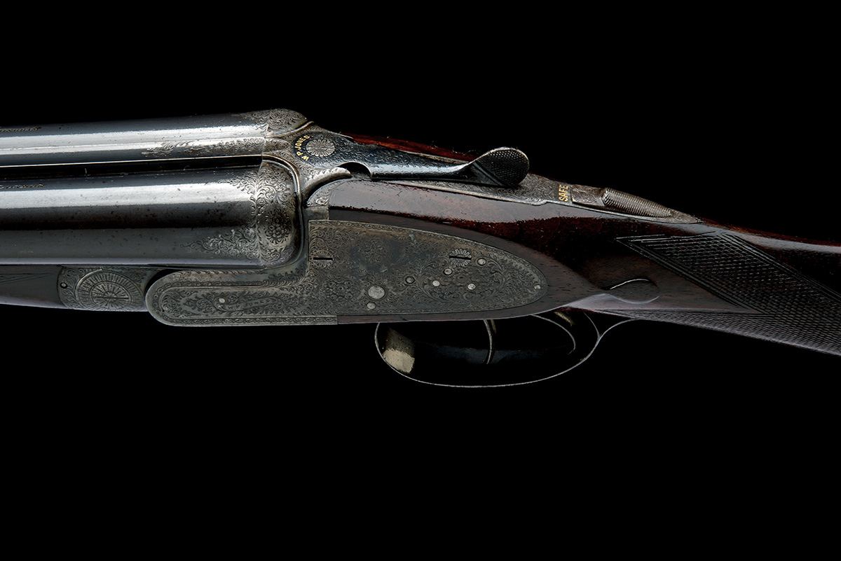 circa 1910, 28in. nitro reproved barrels (in 2025), the tubes engraved 'W.P. JONES. 25 WHITTALL STREET. BIRMINGHAM. WINNER AT THE "FIELD" TRIALS OF 12, 16 & 20 BORE GUNS. LONDON.', 2 1/2in. chambers, bored approx. imp. cyl. and 1/2 choke, the toplever inlaid in gold 'W. P. JONES.', automatic safety with gold-inlaid 'SAFE' detail, acanthus scroll engraving with floral bouquets, retaining some original colour-hardening, 14 1/2in. boldly-figured stock, weight 6lb. 7oz., in its leather case