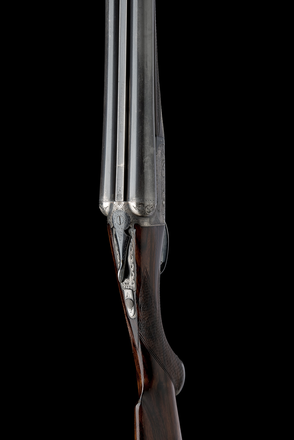 for 1963, 27in. nitro barrels (losses to bluing, loose on action), the rib engraved "CHUBBS OF EDGEWARE", 2 3/4in. chambers, bored approx. imp. cyl. and 1/4 choke, Webley 700 action with Webley number 133173, automatic safety, border and scroll engraving, the action sides with 'CHUBBS OF EDGEWARE', retaining very slight traces of colour-hardening, 14 3/4in. pistolgrip stock with steel pistolgrip-cap, weight 6lb. 8oz.