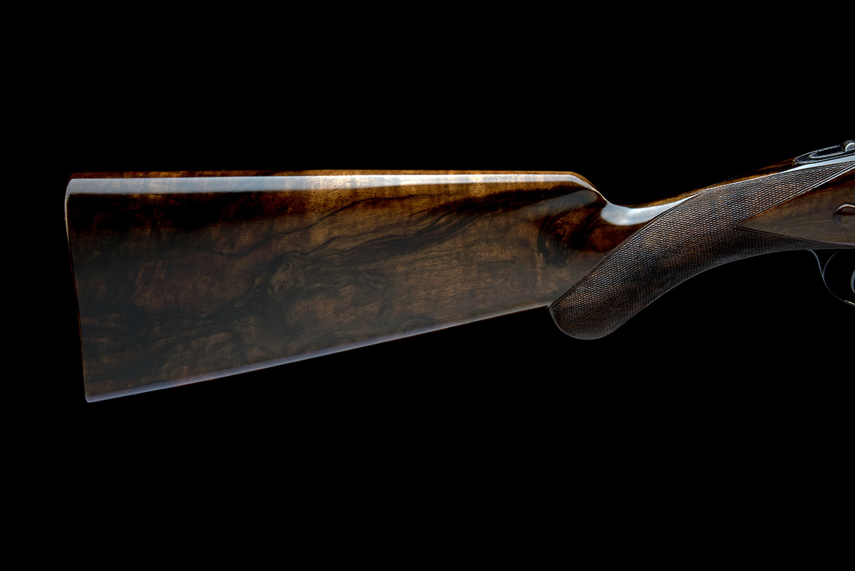 dated 1966, 27 1/2in. nitro barrels with 6mm ventilated matt top-rib, 2 3/4in. chambers, bored approx. imp. cyl. and 1/4 choke, three-piece fore-end, manual safety with integral barrel selector switch, border and acanthus scroll engraving, signed 'E. Bernard', blued finish, 14 1/2in. figured semi-pistolgrip stock (cracked at hand), weight 6lb. 13oz.