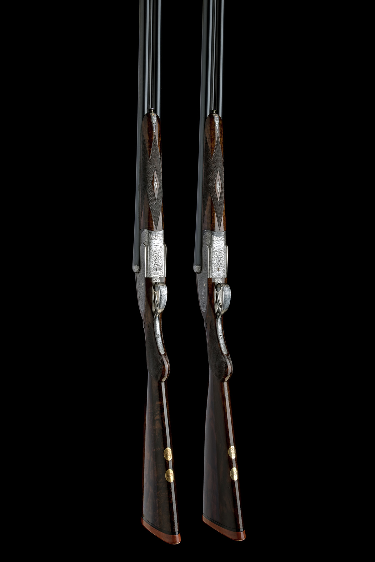 Provenance: The makers have kindly confirmed that the guns were built in 1932 for a Monsieur Eddy Edmond-Blanc as part of a 'set of three 12-bore "Royal Brevis" Hammerless Ejector "Self Opening" Guns' with 26 1/2in. barrels and half-pistol hand stocks. The records note new barrels fitted in 1980