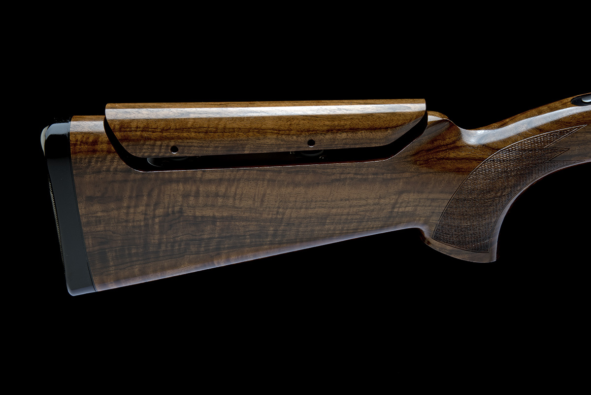 for 2019, 31 7/8in. (81cm) high performance steel proof nitro barrels with 10mm ventilated matt top-rib, interchangeable high visibility fore-sights and interchangeable barrel balancer weights, 3in. chambers, multichokes (with spares), Blaser Ejection Ball System, hold-open toplever, manual safety, single trigger with barrel selector toggle, matt black finish with yellow 'F3' lettering, 14 5/8in. well-figured pistolgrip stock with right hand palm swell, adjustable comb and 3/4in. buttplate, weight 8lb. 10oz., in its universal case
