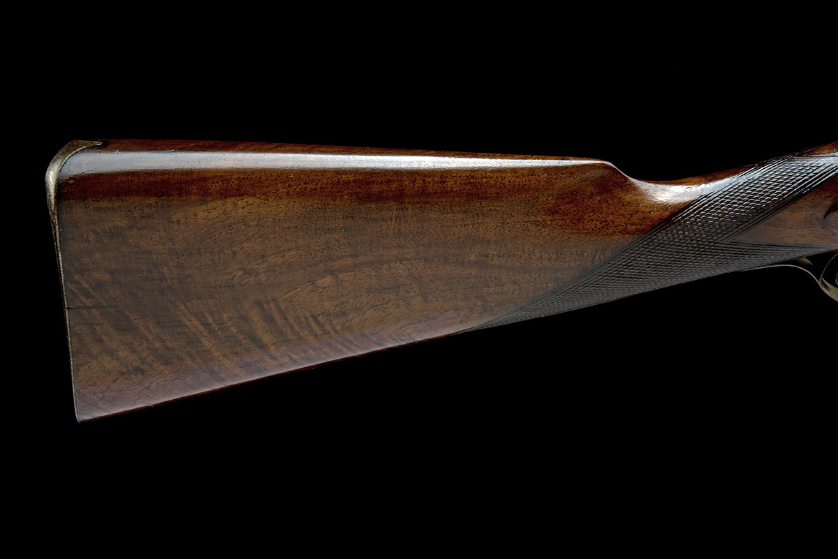 circa 1860, with Birmingham proved 34in. barrels (address erased), plain breech with nickel plugs, borderline and scroll engraved top-tang, borderline and scroll engraved bar-action locks signed 'J.F. WHITE', engraved hammers, chequered walnut half-stock (small losses to upper edges of fore-end), iron furniture and provision for ramrod (ramrod absent)