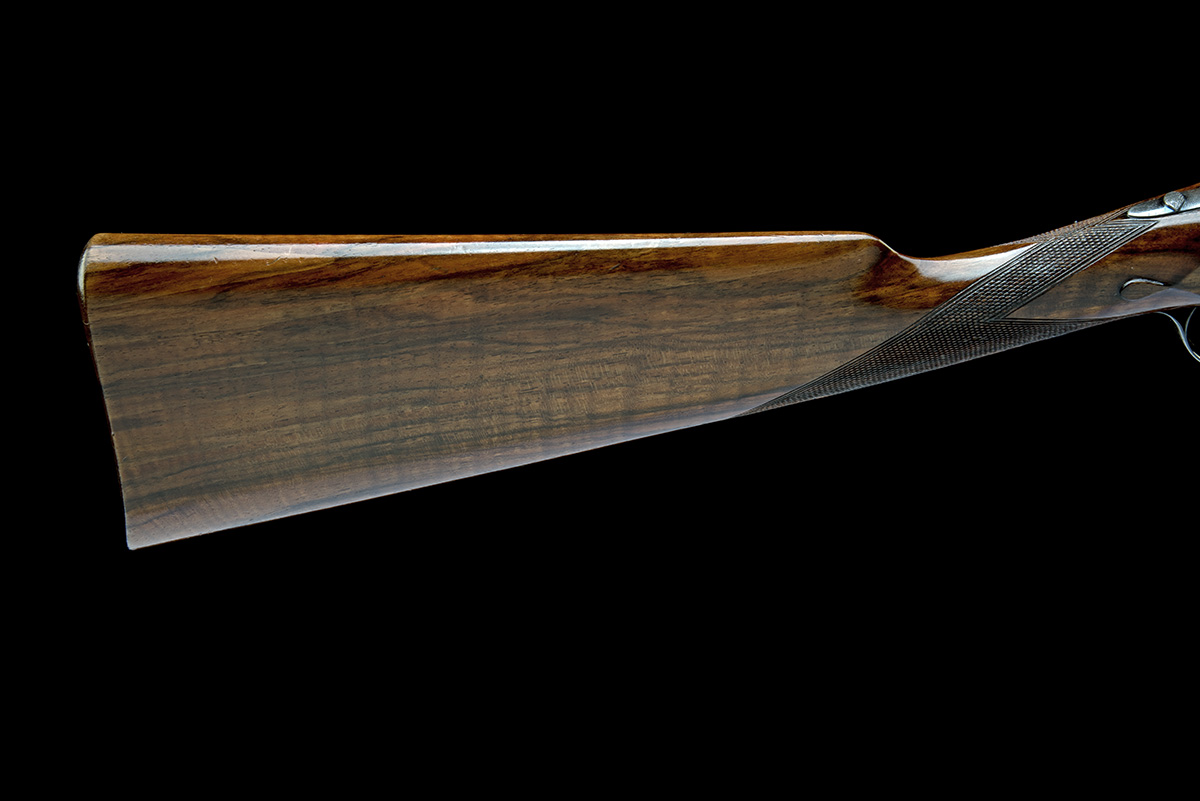 for 1925, 29in. replacement nitro chopperlump barrels (by the makers in 2003, loop numbers 78523/4), the rib engraved '2' and 'J PURDEY & SONS. AUDLEY HOUSE. SOUTH AUDLEY STREET. LONDON.', 2 3/4in. chambers, bored approx. imp. cyl. and 1/2 choke, wear to finish, some pits, toplever engraved '2', removable striker discs, automatic safety with gold-inlaid 'SAFE' detail, cocking-indicators, best fine acanthus scroll engraving with floral bouquets, some renewed finish, 15 1/2in. figured replacement stock (cast and swept towards central vision), weight 6lb. 10oz.