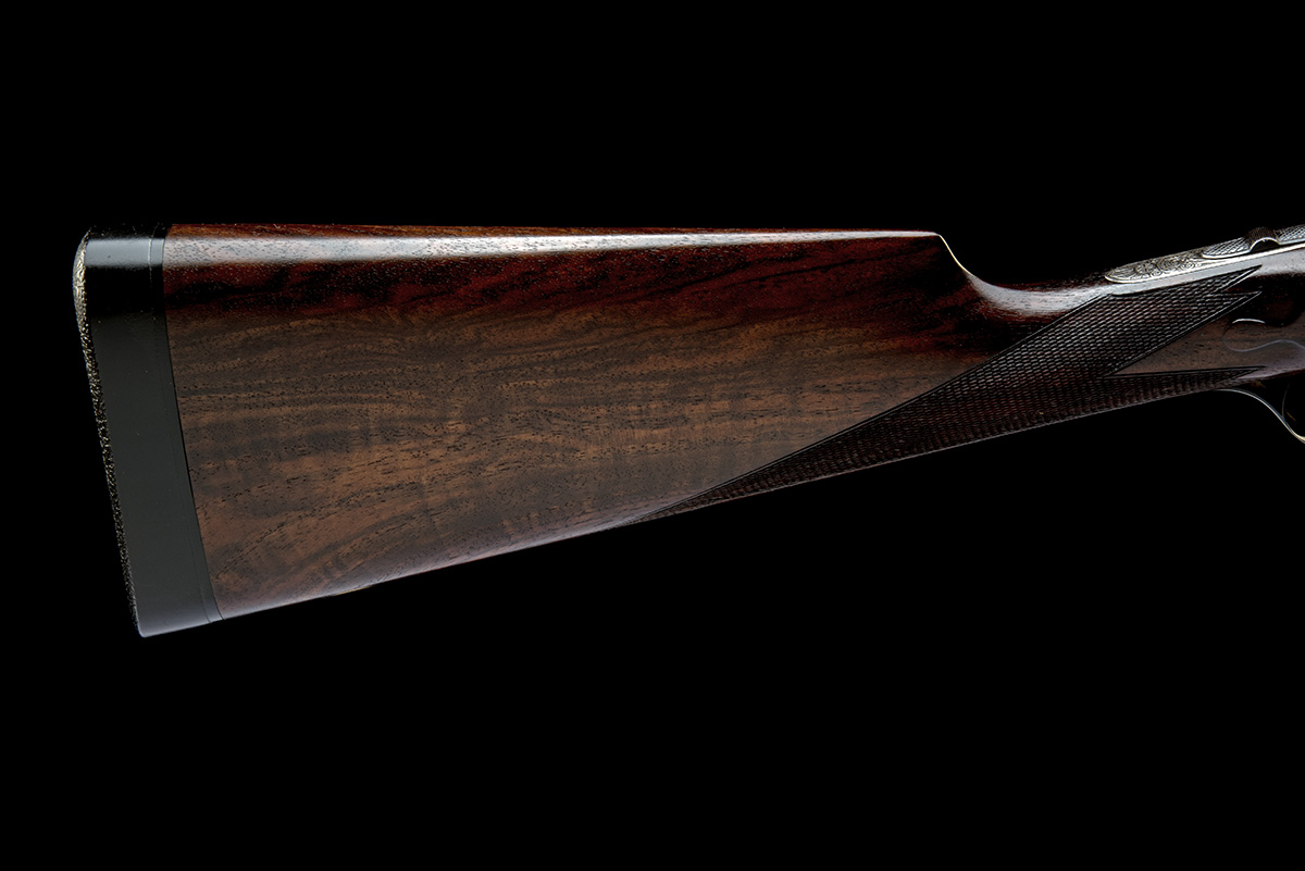 for 1972, 25 5/8in. nitro reproved Bohler Antinit-steel nitro chopperlump barrels (in 2003), matt sight rib with open sights and banner engraved 'KAL. 7X65R - 7X65R' with quickly-detachable telescopic sight mount bases, the rib engraved ' - JOSEF WINKLER. FERLACH - AUSTRIA -', ramp-mounted bead fore-sight, treble-grip action with short side-bolsters, removable striker discs, manual safety, hand-detachable lockplates with concealed flush release lever, cocking-indicators, articulated front trigger, fully engraved with bold Germanic scroll engraving, silver and blued finish, 14in. stock including 7/8in. recoil pad, 10 1/2in. fore-end with Deeley & Edge patent release and engine turned finish to the iron, weight 8lb. 14oz.