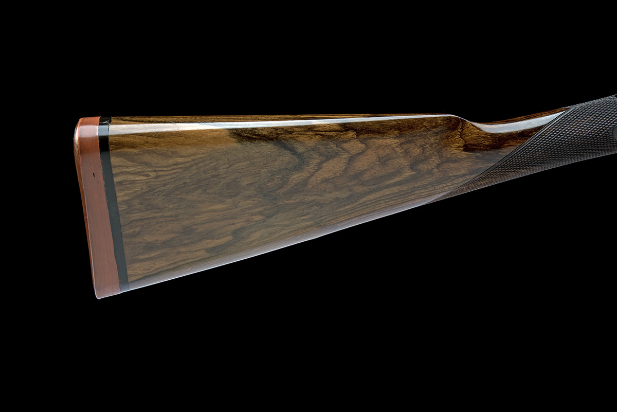 circa 1896, 27 7/8in. nitro reproved damascus barrels (in 1988), the rib engraved 'J. BLANCH & SON. 29 GRACECHURCH STREET. LONDON.', 2 1/2in. chambers, bored approx. 1/4 and 1/2 choke, treble-grip action with gas checks, automatic safety with gold-inlaid 'SAFE' detail, gold through-lined cocking-indicators, best bold acanthus scroll engraving with ornate bordering, retaining very slight traces of colour-hardening and some renewed finish, 15 1/4in. figured stock including rubber recoil pad, fore-end with 'J. BLANCH & SON'S IMPROVED SNAP BOLT.' release lever, weight 5lb. 12oz.