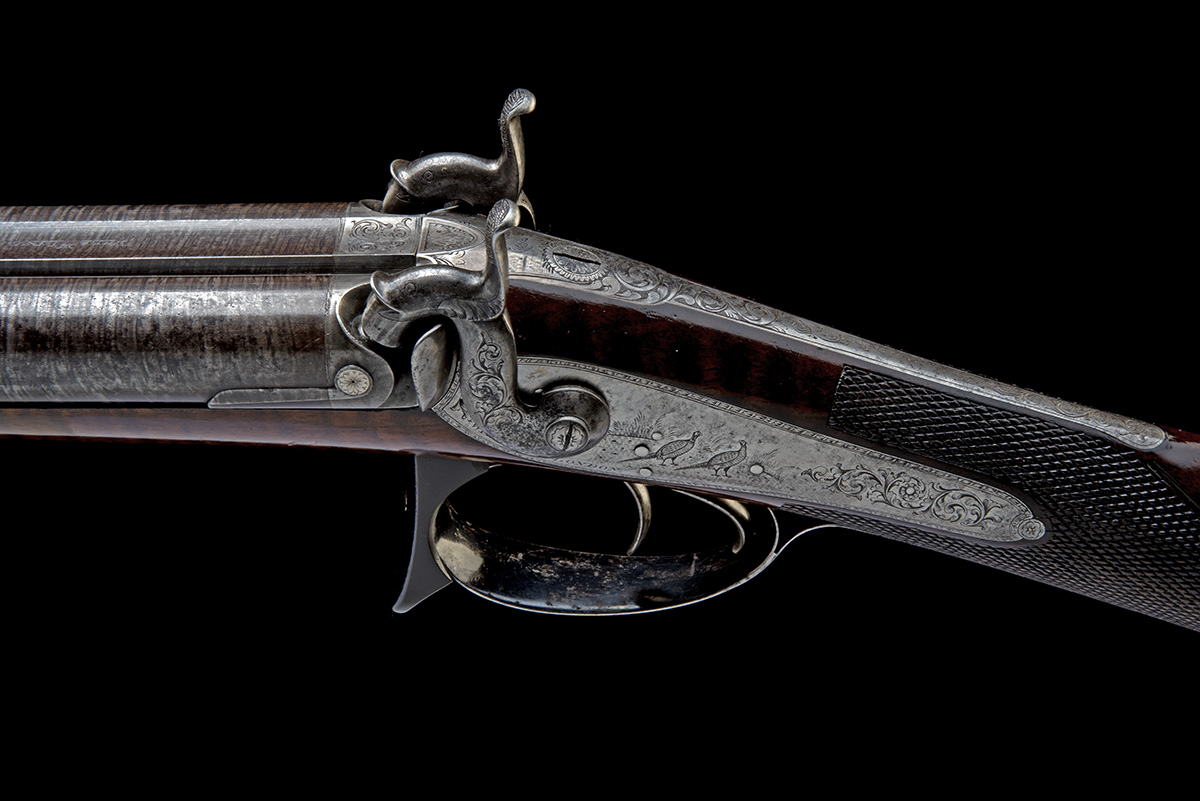 A CASED 14-BORE PERCUSSION DOUBLE-BARRELLED SPORTING GUN SIGNED WILLIAM LING, LONDON, serial no. 528,