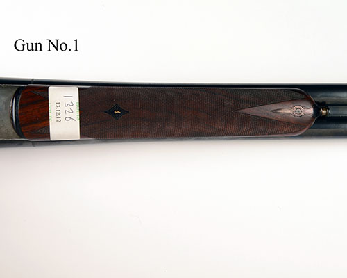 28in. nitro barrels with raised ventilated ribs, gold-inlaid at the breech ends '1' and '2', 2 3/4in. chambers, bored approx. 1/2 and full choke, removable striker discs, automatic safeties, gold-washed triggers and lockpins, border engraving, bright and blued finish overall, 14 5/8in. figured stocks including 1/2in. rubber recoil pads, weight 7lb. 8oz., in a vinyl motor case