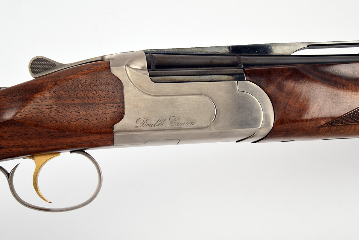 AKKAR 12-BORE (3IN.) 'DOUBLE CROWN' SINGLE-TRIGGER OVER AND UNDER EJECTOR, serial no. 15310702, 32 3/4in. nitro barrels (including chokes) with ventilated mid-rib and 9mm ventilated matt top-rib, 3in. chambers, multichokes (no spares), hold-open toplever, manual safety with integral barrel selector switch, gold-washed single trigger, plain action, 14 3/8in. pistolgrip stock with adjustable comb, including 3/4in. rubber recoil pad, weight 8lb. 5oz.