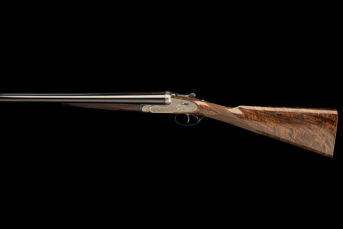 for 1938, 28in. replacement nitro chopperlump barrels (by another in 2008), 2 3/4in. chambers, bored approx. 1/4 and 1/2 choke, automatic safety with gold-inlaid 'SAFE' detail, hand-detachable lockplates, gold-inlaid cocking-indicators, rolled-edge triggerguard, best 'Royal' scroll engraving, the underside with an elaborate cartouche engraved 'ROYAL SELF-OPENER PATENT 1922', brushed finish, 14 3/4in. figured replacement stock, weight 6lb. 13oz., in its makers leather case