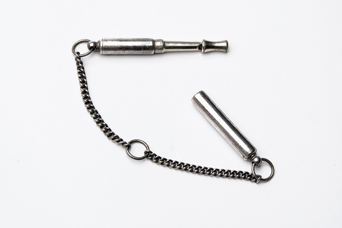 A GROUP OF FOUR VINTAGE SHOOTING PRIZES, circa 1930s, being 1) a medallion with script 'DEVONPORT PORT RIFLE & REVOLVER MEETING'; 2) a silver plated dog whistle; 3) a bronze medallion of 5 in. diameter depicting a clay-pigeon shooter; 4) a bronze 'clay' inscribed C. P. S. A. / INTERNATIONAL MATCH / LONDON / THIRD HIGH GUN'; all in their original box of issue