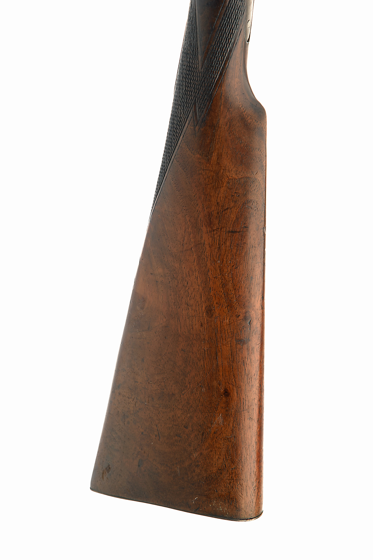 circa 1900, 26 3/4in. turned octagonal to round nitro barrel, 2 1/2in. chamber, bored approx. true cyl., central rebounding hammer, plain action, 14 1/4in. stock including steel buttplate;
