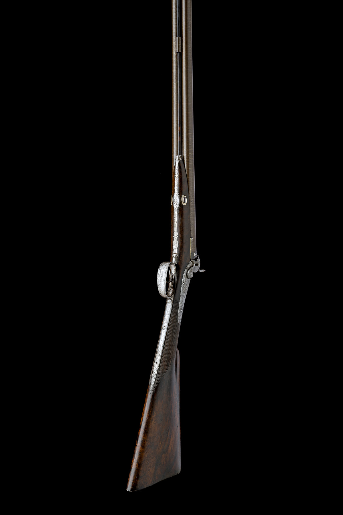 A 14-BORE PERCUSSION DOUBLE-BARRELLED SPORTING GUN, serial no. 4059,