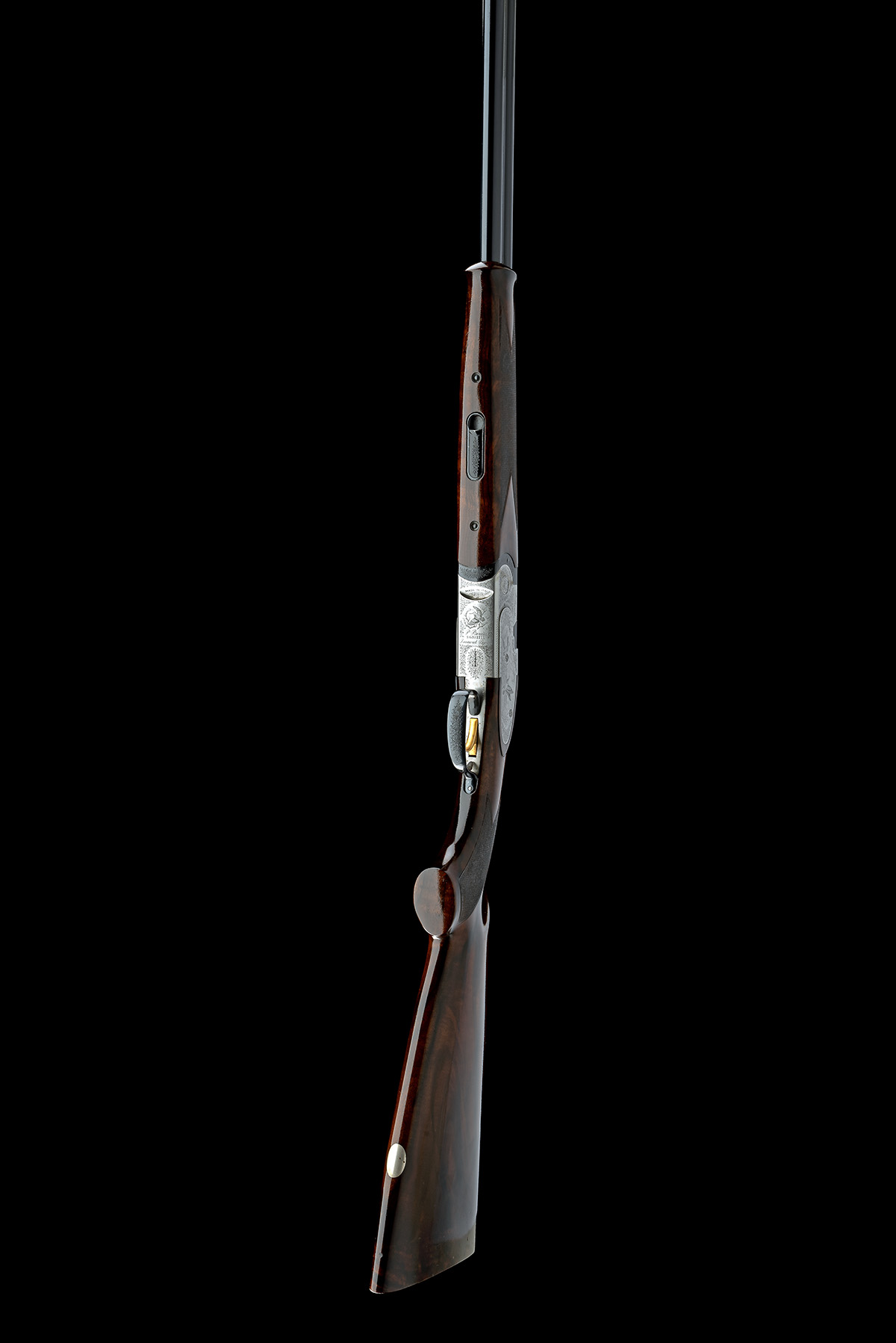 for 1996, 29 1/2in. nitro barrels with 6mm ventilated matt top-rib, 3in. chambers, bored approx. imp. cyl. and 1/4 choke, hold-open toplever, automatic safety with integral barrel selector switch, gold-washed trigger, floral and scroll engraving with game scenes of duck and snipe, the underside with a woodcock, the triggerplate signed 'Bottega C. Giovanelli', 15 3/8in. figured pistolgrip stock including 1 1/4in. wooden extension, small setting crack at rear of top tang, weight 6lb. 5oz.