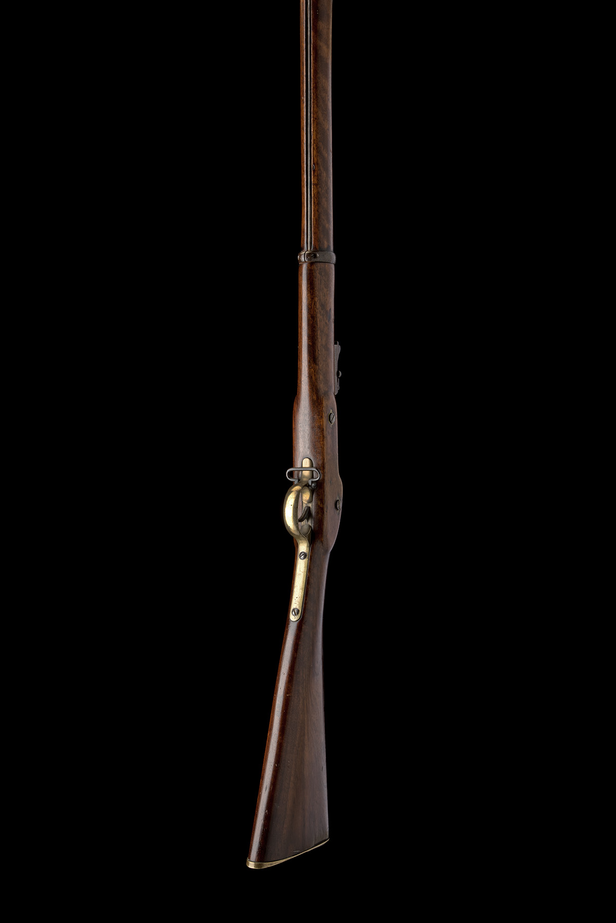 fourth model and dated for 1864, with 39in. barrel (refinished and with some shallow pitting), block and blade fore-sight, elevating ladder rear-sight, plain lock signed and dated centrally and with 'V.R.' and crown device to tail (all rubbed), walnut full-stock, the right side with oval silver plaque engraved 'PRESENTED TO SERGEANT A. STREDLING BY HIS BROTHER VOLUNTEERS, Ist BUCKS R.V. GREAT MARLOW 1866', brass furniture except for three Baddeley barrel-bands and jag-ended ramrod