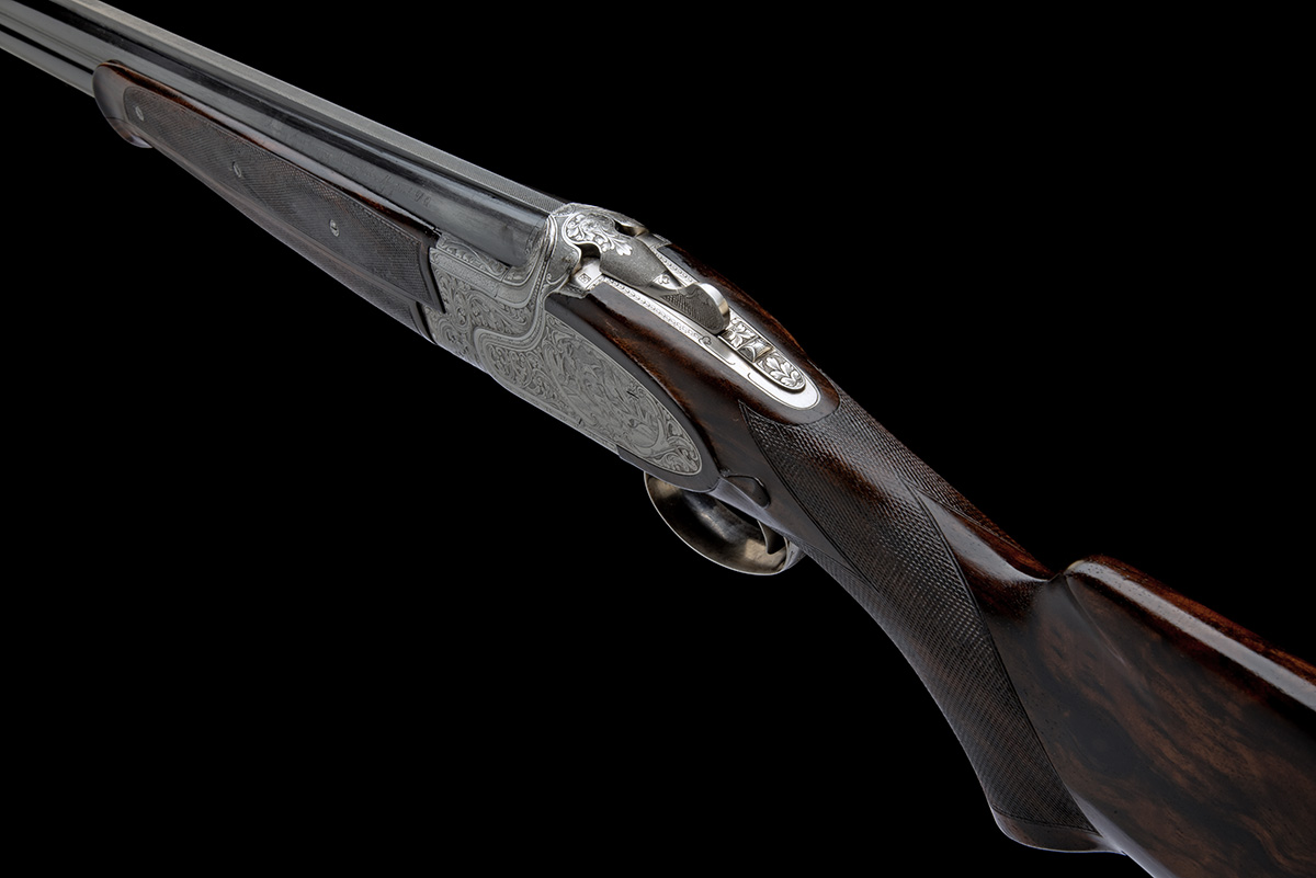 dated 1994, 30in. nitro barrels (choke reproof in 1997) with 6mm ventilated matt top-rib, 2 3/4in. chambers, multichokes (with spares), hold-open toplever, manual safety with integral barrel selector switch, bold acanthus scroll engraving, the decorative sideplates with vignettes of pheasant and mallard, bright finish, 14 1/4in. figured pistolgrip stock, weight 7lb. 11oz., in its makers faux fur-lined universal case