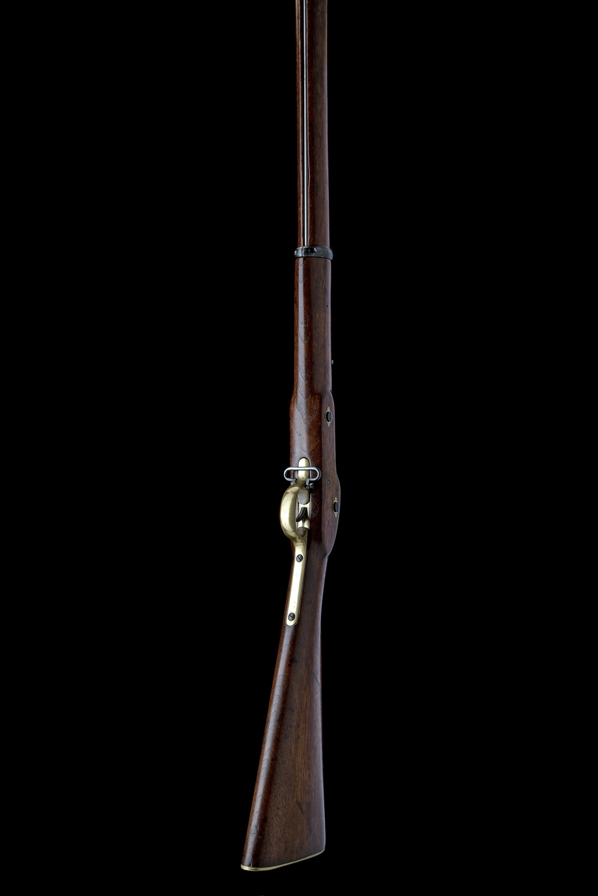 dated for 1864, with reblued 39in. barrel, block and blade fore-sight, fixed standing notch rear-sight, ordnance and farsi marks at breech, later re-proof for blank, plain lock signed 'ENFIELD' below the date, 'I' and broad arrow stamp, and 'V.R.' with crown device at tail, walnut full-stock, brass furniture and three blued iron barrel-bands, refinished, with jag-ended ramrod