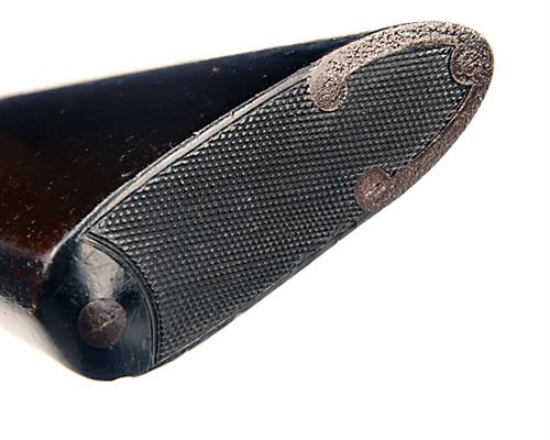 Other Notes: James Leetch of 24 Margaret St. Cavendish, London first submitted his carbine design to the Board of Ordnance in 1854. Initially considered for an order, it was later rejected on the grounds of lack of manufacturing capacity, its place being taken by the American made Sharps. However, by 1859, demand for carbines was high and a company was set up to manufacture the Leetch design. The Breech Loading Gun Co was situated at 29 Marylebone St, London and had F. Robert Beasley as Secretary and Robert Scott as Manager. These later carbines differed from the original in having a solid butt-stock as opposed to a skeleton design. It is believed this is a trials pattern in that it has the large No. 9 stamped in the butt, commercial London proofs and complete absence of the address markings which are usually associated with later produced pieces