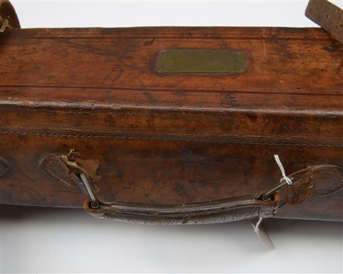 A TWO TIER LEATHER SINGLE GUNCASE,
