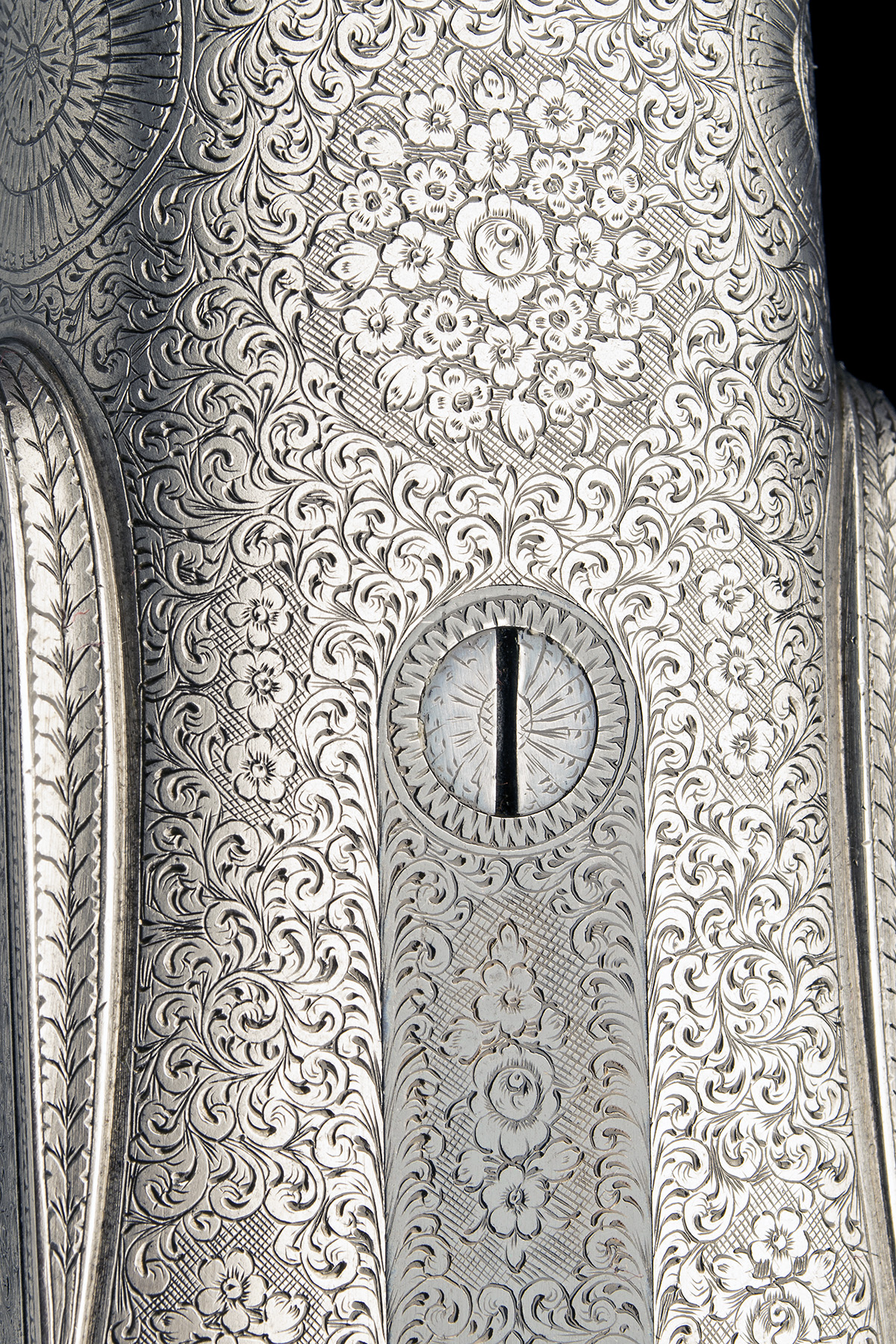 28in. lined nitro damascus barrels, ribs engraved 'T. PERKES. 15 SWALLOW ST. PICCADILLY. LONDON.' and engraved '1' and '2' towards the breech end, No.1 gun with 3in. chambers, No.2 with 2 3/4in. chambers, bored approx. 1/4 and 1/2 choke (both), sidelever actions, automatic safeties with gold-inlaid 'SAFE' details, fine border and acanthus scroll engraving, brushed bright finish, 13 3/4in. crossover stocks (right shoulder, left eye, slight setting cracks to rear of lockplates), weight 6lb. 5oz. (No.1), 6lb. 4oz. (No.2), fore-ends with grip-release, in a brass-cornered double guncase