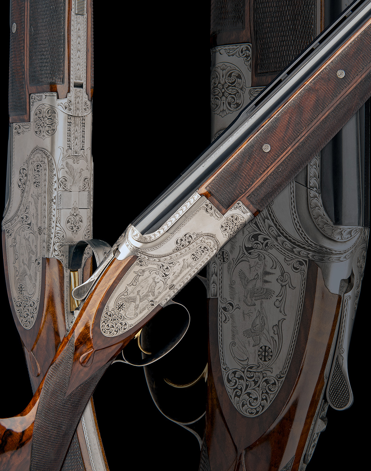 A CHAUVIN-ENGRAVED 12-BORE CUSTOM SIDEPLATED SINGLE-TRIGGER OVER AND UNDER EJECTOR, serial no. 9705,