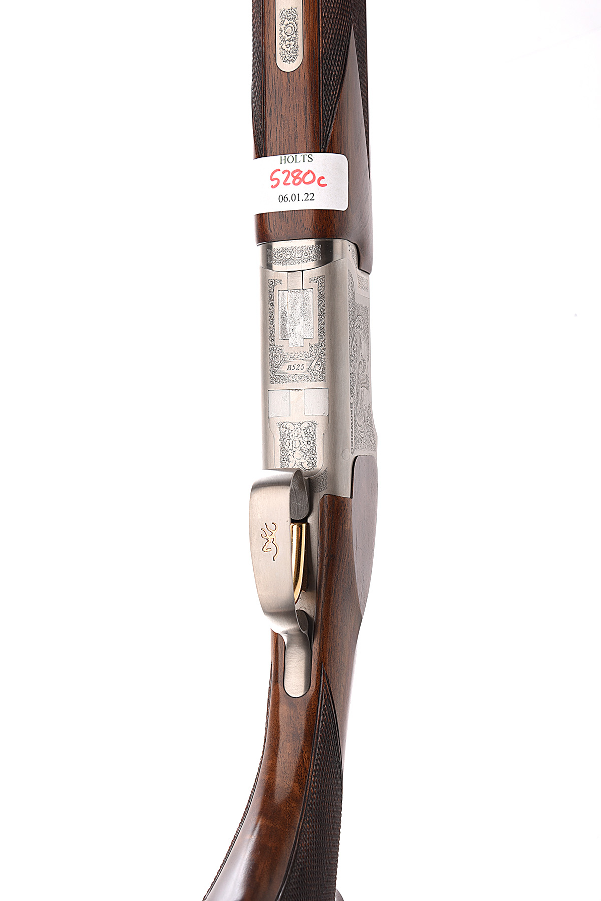 † BROWNING .410 (3IN.) 'MOD. B525' SINGLE-TRIGGER OVER AND UNDER EJECTOR, serial no. 69989ZP, dated 2018, 30in. nitro barrels with 6mm ventilated matt top-rib, 3in. chambers, multichokes (one spare), hold-open toplever, automatic safety with integral barrel selector switch, gold-washed trigger, game and scroll engraving, satin finish, 15in. pistolgrip stock including 7/8in. rubber recoil pad, weight 7lb. 3oz., in its universal case with paperwork