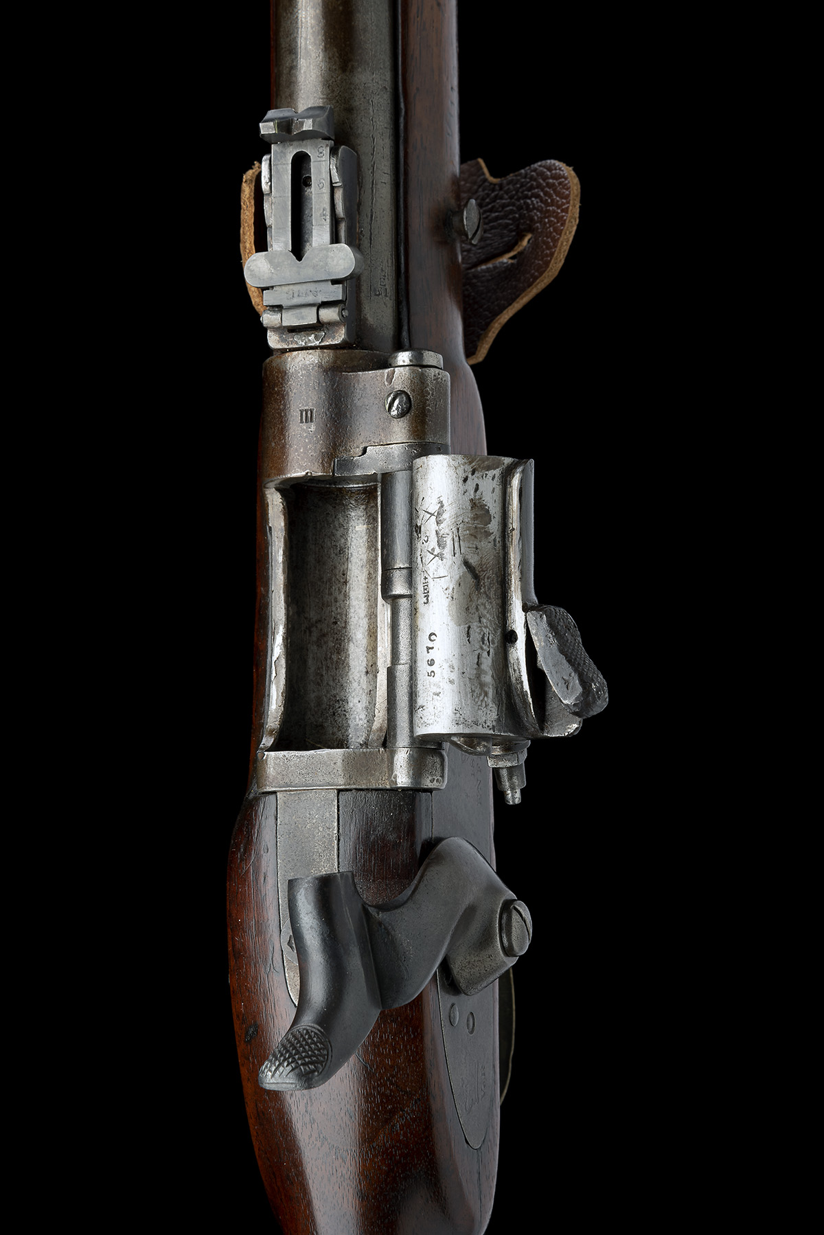 Provenance: After the supply of Pattern 1861 percussion cavalry carbines for conversion to Snider was exhausted, Snider carbines were made up as new arms with the improved Mk III positive bolt and latch locked action and a steel rather than an iron barrel. 15,000 were produced at Enfield 1869/71 and this was one.