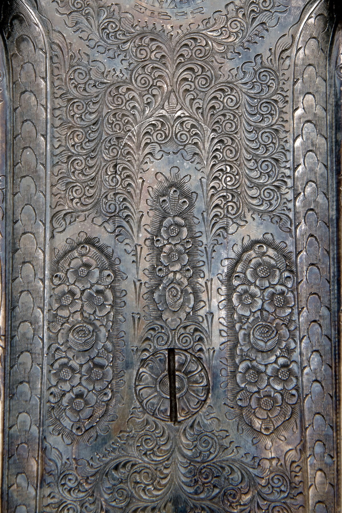 for 1973, 28in. nitro chopperlump barrels, the ribs gold-inlaid '1' and '2' at the breech ends, 2 3/4in. chambers, bored approx. true cyl. and 1/4 choke, toplevers gold-inlaid '1' and '2', automatic safeties with gold-inlaid 'SAFE' details, removable striker discs, hand-detachable lockplates, gold-inlaid cocking-indicators, articulated front triggers, rolled-edge triggerguards (No.1 with thread visible) acanthus scroll engraving with floral bouquets, retaining much original colour-hardening and finish, 14in. stocks, No.1 with setting crack to rear of top tang, weight 6lb. 12oz. (No.1) and 6lb. 10oz. (No.2)
