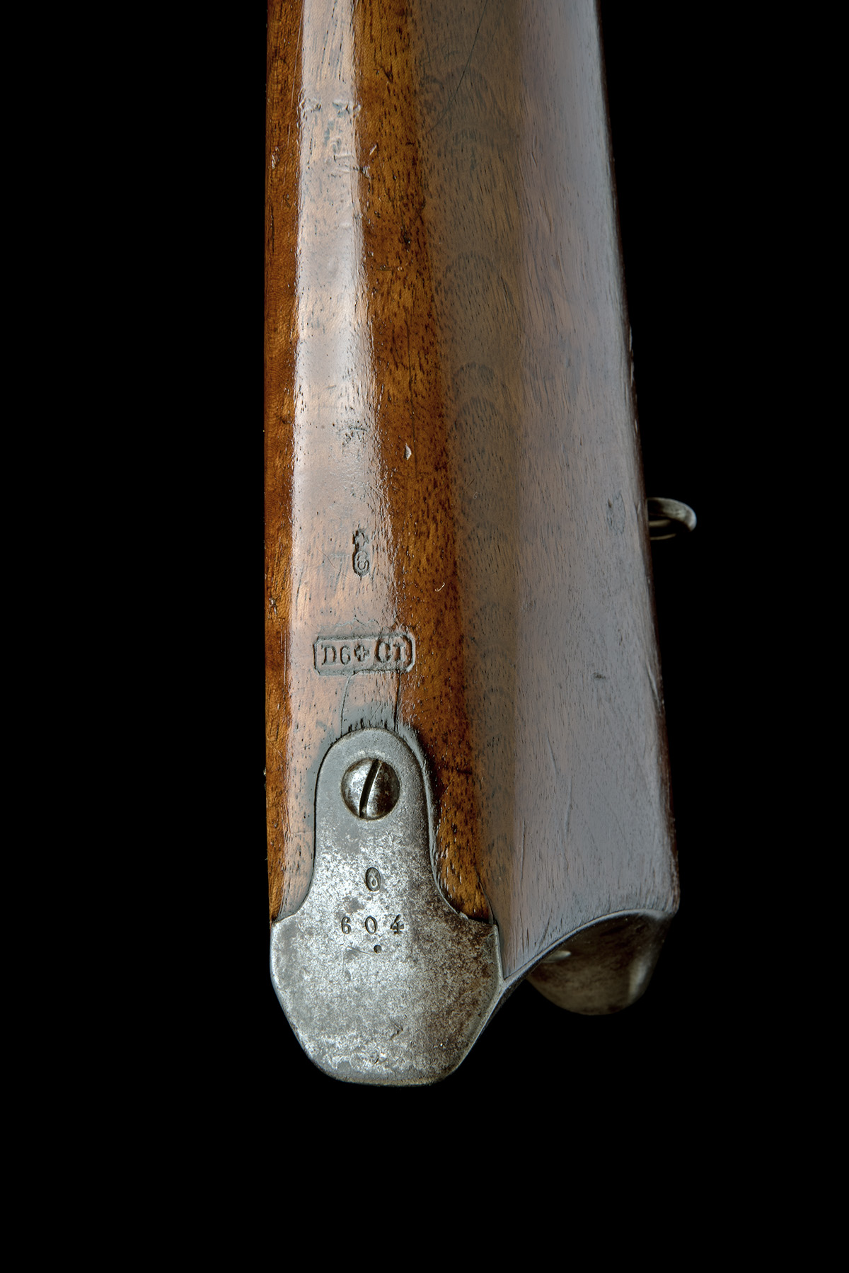 circa 1882, with well reblued 33in. barrel, block and blade fore-sight, elevating tangent rear-sight, slab-sided receiver marked with the manufacturing arsenal and the date, loading aperture to right side, tubular bolt-housing with central fire bolt and turned down bolt-handle, walnut butt-stock, full-length walnut fore-end concealing the tubular magazine, iron furniture and under-barrel clearing rod