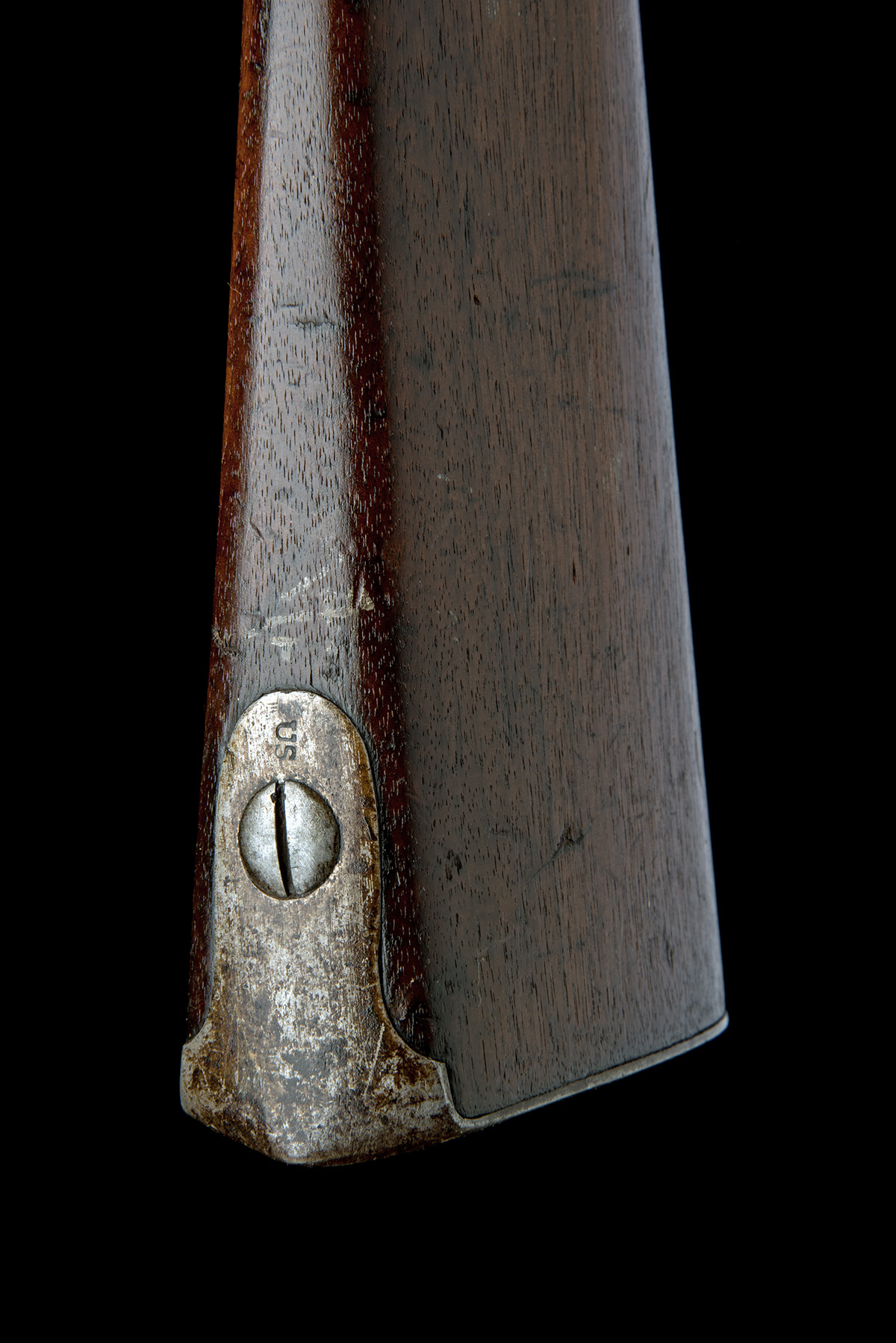 Provenance: In 1848, when it was discovered that over 700,000 muskets were in stores across America, a decision was made to upgrade some existing flintlock stocks to the percussion system. Over 100,000 pieces were found unworthy and condemned or sold onto the civilian market. Of the remainder, Hewes & Philip were contracted to convert 20,000 pieces out of which 12,000 were also rifled at the same time as per this example