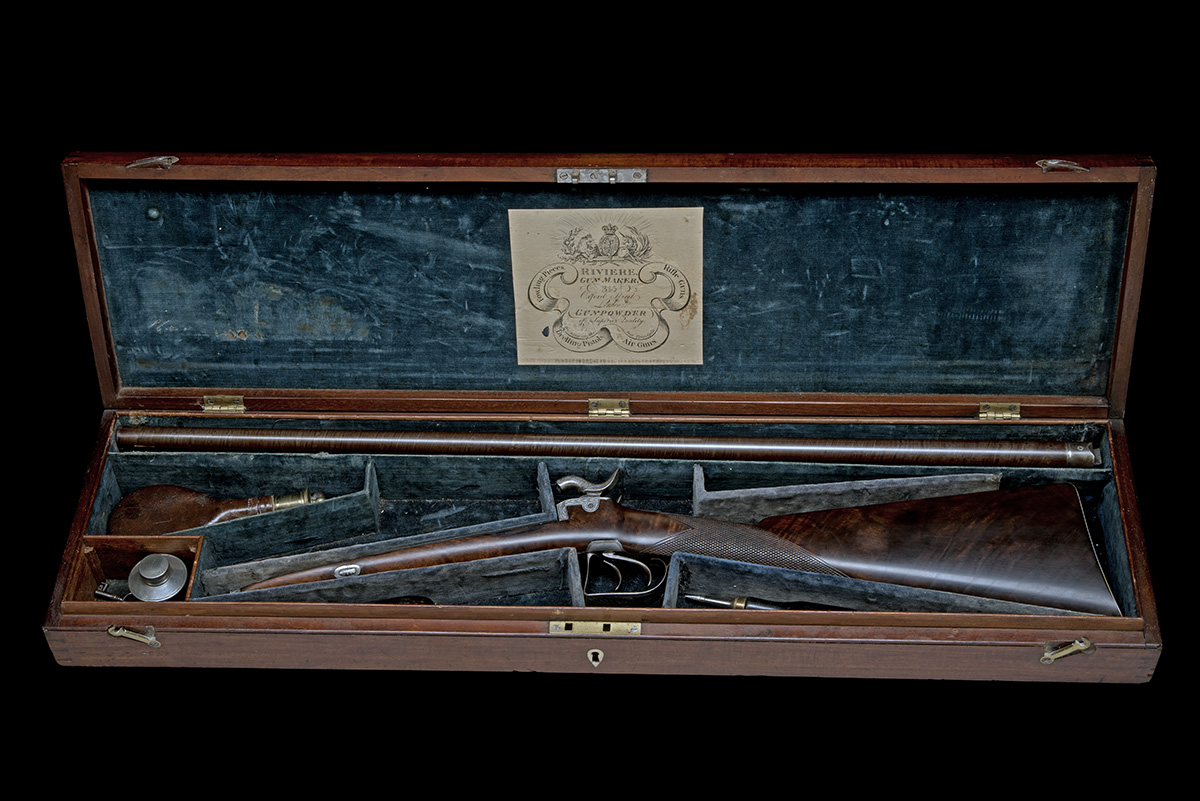 RIVIERE, LONDON A CASED EARLY 16-BORE PERCUSSION RIVIERE PATENT DOUBLE-BARRELLED SPORTING GUN, serial no. 10,