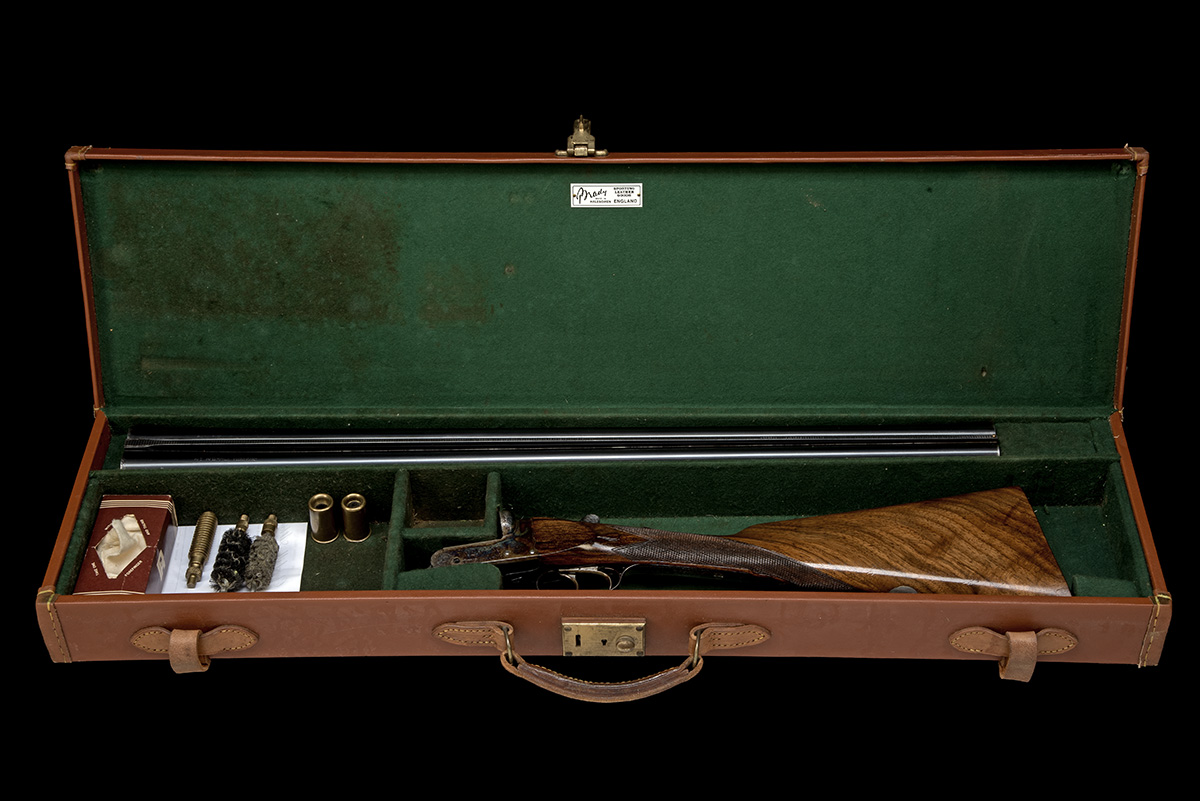 for 1974, 27in. nitro barrels with matt Churchill-rib, the tubes engraved 'CHURCHILL GUNMAKERS LTD. 7, BURY STREET. ST. JAMES'S. LONDON. ENGLAND', 2 3/4in. chambers, bored approx. 1/4 and 1/2 choke, scroll-back action with slender fences, automatic safety with gold-inlaid 'SAFE' detail, border and acanthus scroll engraving with floral bouquets, the sides engraved 'CHURCHILL' in scrolling banners, the underside with 'THE REGAL', retaining much original colour-hardening and finish, 14 1/8in. stock, weight 6lb. 5oz., in a Brady case