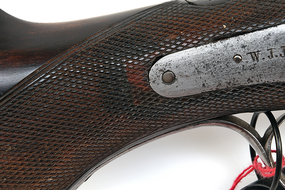circa 1904, 24in. cordite proof barrels (Cordite 80 gr Ball 480gr maxm) with wave cut rib, open sights and two folding leaf sights marked '1', '2' and '3', ramped bead fore-sight, the tubes later engraved 'W. J. JEFFERY & CO. 13 KING ST. ST JAMES ST. LONDON SW' (sic), treble-grip action, carved percussion fences, rebounding back action locks engraved with 'W.J. JEFFERY & CO.', plain polished finish (patination remaining), triggerguard tang numbered 15340, 15 1/8in. pistolgrip stock (extensive repairs at wrist) with steel pistolgrip-cap, sling eyes and including 1in. recoil pad, fore-end iron with signs of work and shrinkage to wood, weight 11lb. 14oz.