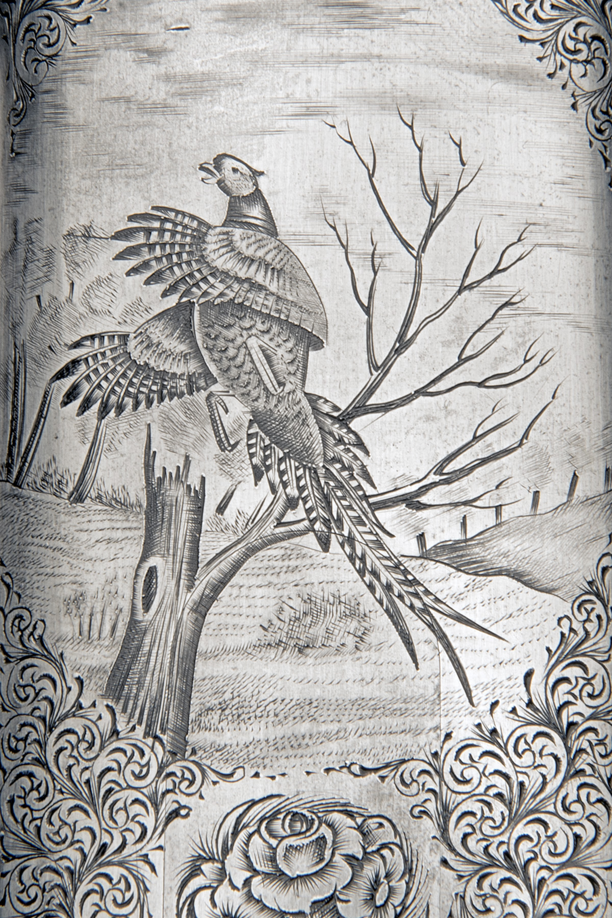 for 2001, 28in. nitro barrels with solid raised tapered matt top-rib, 2 3/4in. chambers, bored approx. 1/4 and 1/3 choke, hold-open toplever, manual safety with gold-inlaid 'S' detail, rolled-edge triggerguard, the action, lockplates and furniture finely carved with acanthus scroll and floral designs, surrounding finely engraved game scenes in Bulino style of pheasant, woodcock and English partridge, the triggerplate signed 'D. BONSI', 14 5/8in. highly-figured semi-pistolgrip stock, weight 7lb. 4oz., in its leather case with paperwork