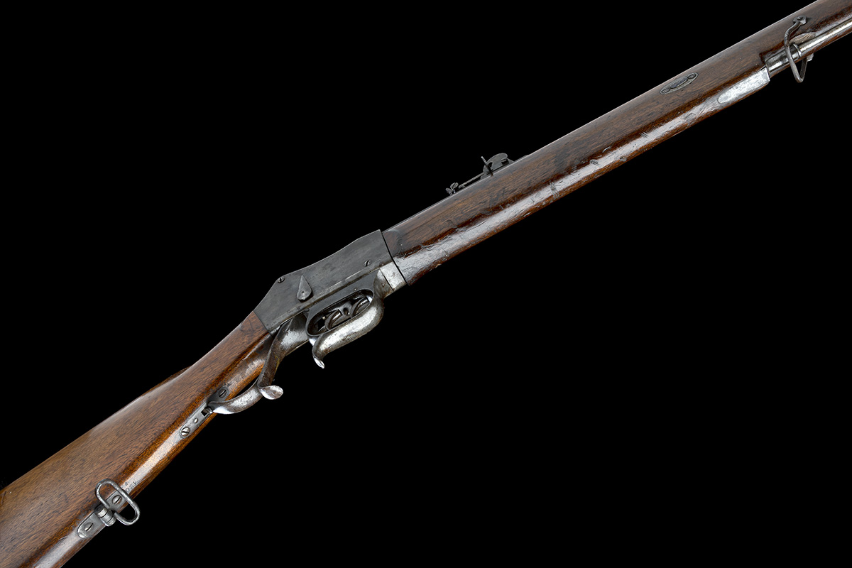 circa 1895, with blued octagonal 26 1/2in. barrel, dove-tailed bead fore-sight, standing notch rear-sight with two additional folding leaves, the matted sighting plane marked with a triangle trademark at breech, the left hand top-flat marked 'WESTLEY RICHARDS & CO, LONDON' and 'FOR .300 CARTRIDGE', plain slab-sided colour hardened receiver, the left face marked with the same address, side-lever opening, central hammer, chequered walnut straight-hand butt-stock ribbed at heel, guarded trigger and chequered walnut snap-on splinter fore-end, much original finish remaining, weight approximately 4 3/4lbs., overall length 42 3/4in.