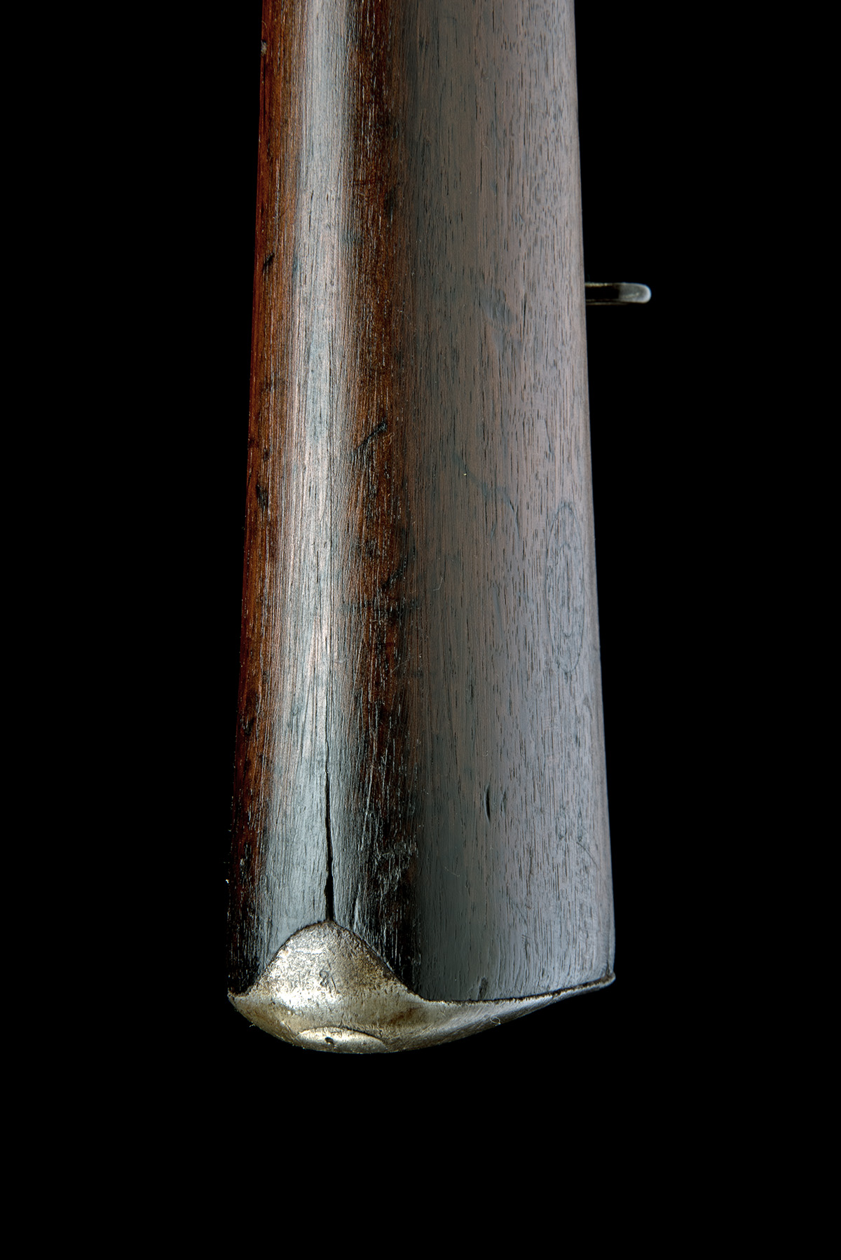 dated for 1886, with blued 32 1/2in. sighted barrel numbered '691', rounded receiver, brushed bright bolt with straight bolt handle numbered 'PP148', the action body stamped 'OE.F.G. STEYR 1886', a ribboned crown over 'L.I.' and 'M1886', walnut full-stock (refinished) with concealed full-length magazine tube and complete with cleaning rod mounted in a channel on the left hand side of fore-end, much finish remaining, miss-matched numbers, fair amount of finish