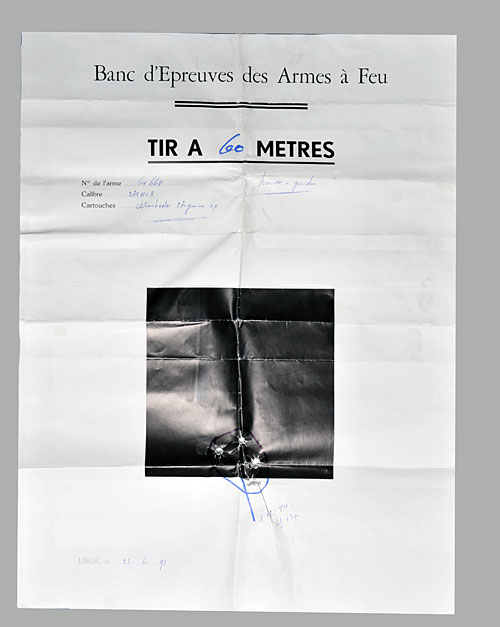 24in. nitro barrels with ramp-mounted bead fore-sight, matt sighting flat with flip-up open sights, hold-open toplever, manual safety with integral barrel selector switch, blacked action engraved with a portrait of a buffalo on the left, rhinoceros on the right, the underside with a lion, defined with flourishes, 14 1/2in. figured stock including 1/2in. rubber recoil pad, weight 9lb. 4oz., in its vinyl and leather case with sighting target and certificate of identification