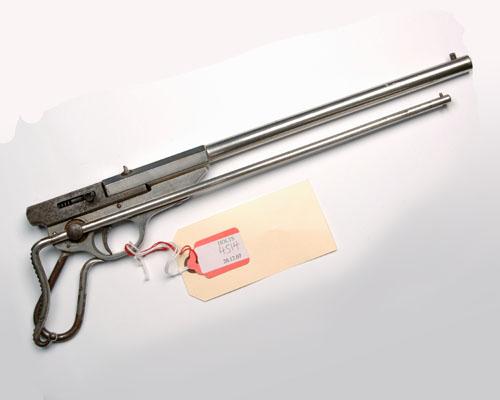 A RARE QUACKENBUSH .22 'BICYCLE RIFLE', no visible serial number, 12in. two-stage nickel-plated sighted barrel, swing-out breech-block (firing mechanism incomplete), nickel-plated frame, and extending nickel-plated shoulder-stock.