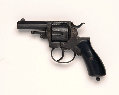* A DEACTIVATED BELGIAN .380 SIX-SHOT DOUBLE-ACTION POCKET REVOLVER, serial no. 154114, with 2 1/2in. octagonal barrel, hardwood grips (missing load gate), stained throughout, with certificate.