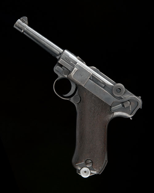 dated for 1940, with blued 4in. barrel (proved 2011), toggle link stamped '42', waffenampt marks to receiver, blued frame, dark-brown wooden chequered grips, aluminium based magazine numbered 4371, good amount of original finish remaining.