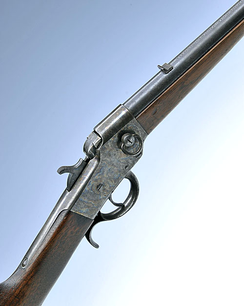 HOPKINS & ALLEN .22 'THE MERWIN HULBERT & CO. JUNIOR' FALLING-BLOCK SPORTING RIFLE, serial no. 12489, 22in. blued sighted barrel, action retaining some original case-hardened finish, 13 3/4in. walnut stock.