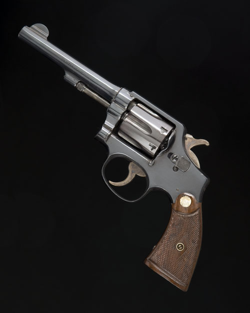 A .38 (S&W) SIX-SHOT DOUBLE-ACTION SERVICE REVOLVER SIGNED SMITH & WESSON, MODEL M&P, serial no. 836578,