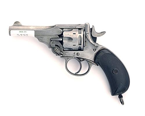 * A .455 (ELEY) SIX-SHOT DOUBLE-ACTION REVOLVER SIGNED P. WEBLEY & SON, MODEL 'MARK III', serial no. 6190, circa 1898, with 4in. barrel signed 'P. WEBLEY & SON. LONDON & BIRMINGHAM', holster guides, frame marked 'WEBLEY PATENTS' and with 'W&S' winged bullet trademark, chequered hard rubber grips (one chipped) and lanyard ring (finish brushed bright overall).
